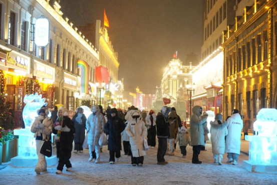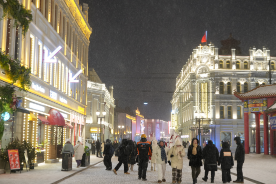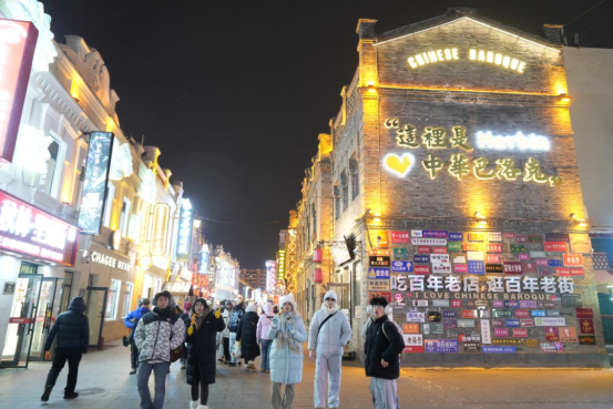 进入冰雪季以来,街区再度火爆“出圈”,日均接待游客达10万人次以上,单日峰值18万人次,已成为冰雪旅游季核心承载空间,辐射带动区域商业、文旅、文创等产业协同发展。中华巴洛克历史文化街区正在助力哈尔滨特色文化旅游内涵式高质量发展的道路上行稳致远,不断焕发出“赓续文脉与守正创新”的蓬勃生机。